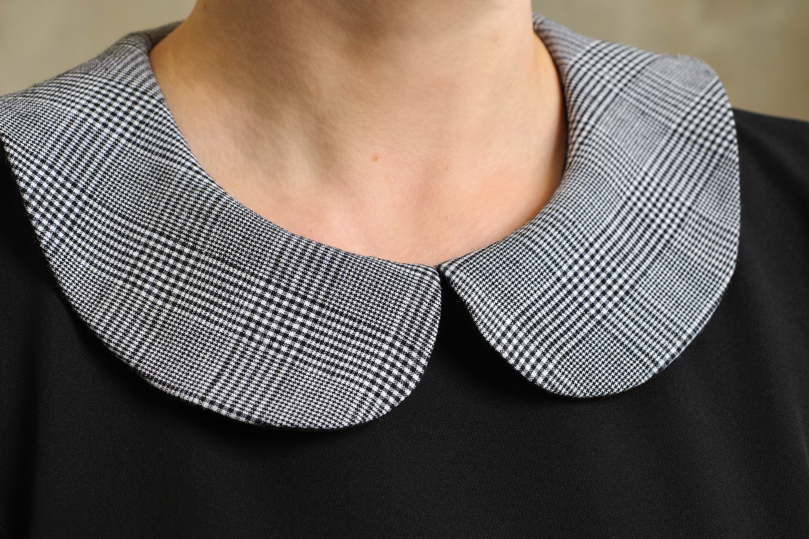 A casual dress with a contrasting bubble collar and puff sleeves that give the dress a unique character. It closes with a hidden zipper at the back and a step slit makes it more comfortable to wear.