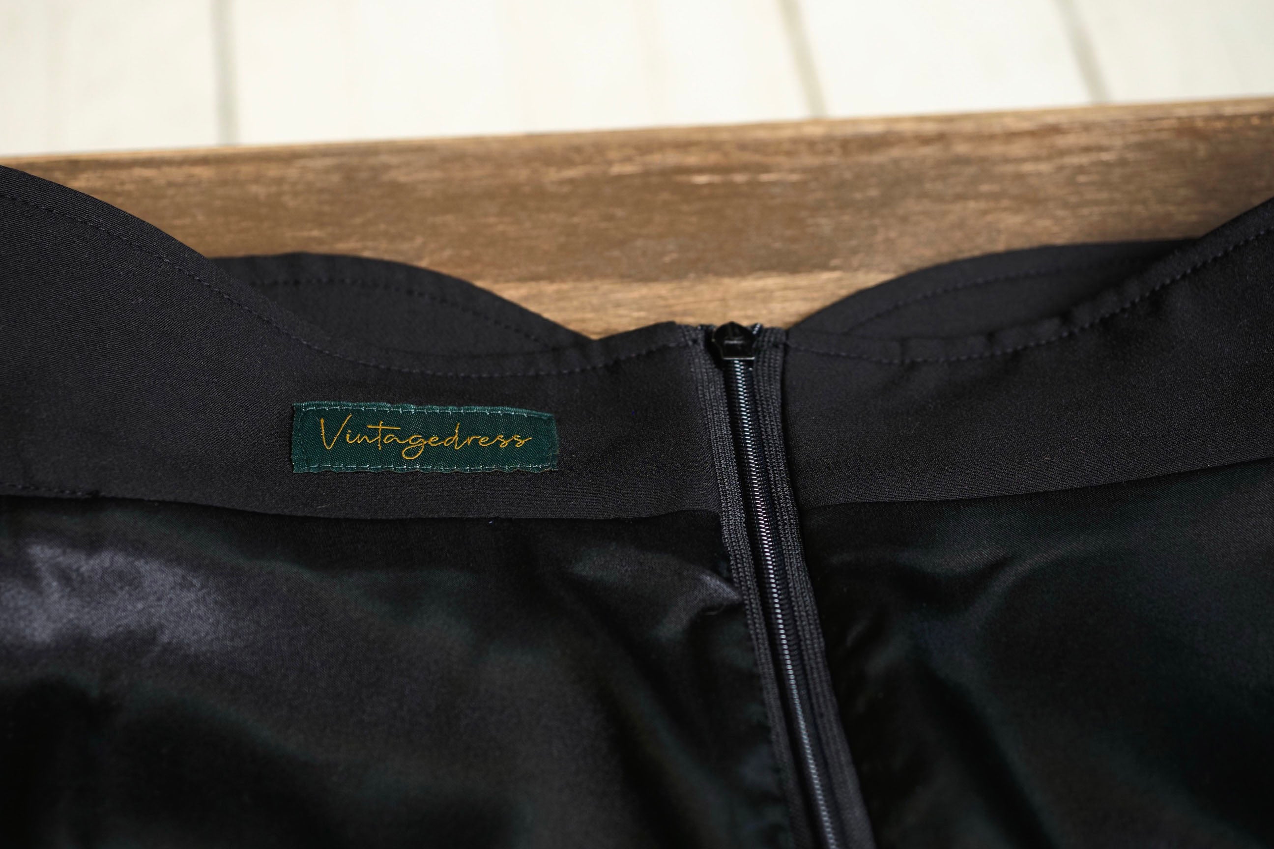 At the front, it has a gently curved high waistline, tapering downwards with a side-slit classic pencil skirt lined with black satin.